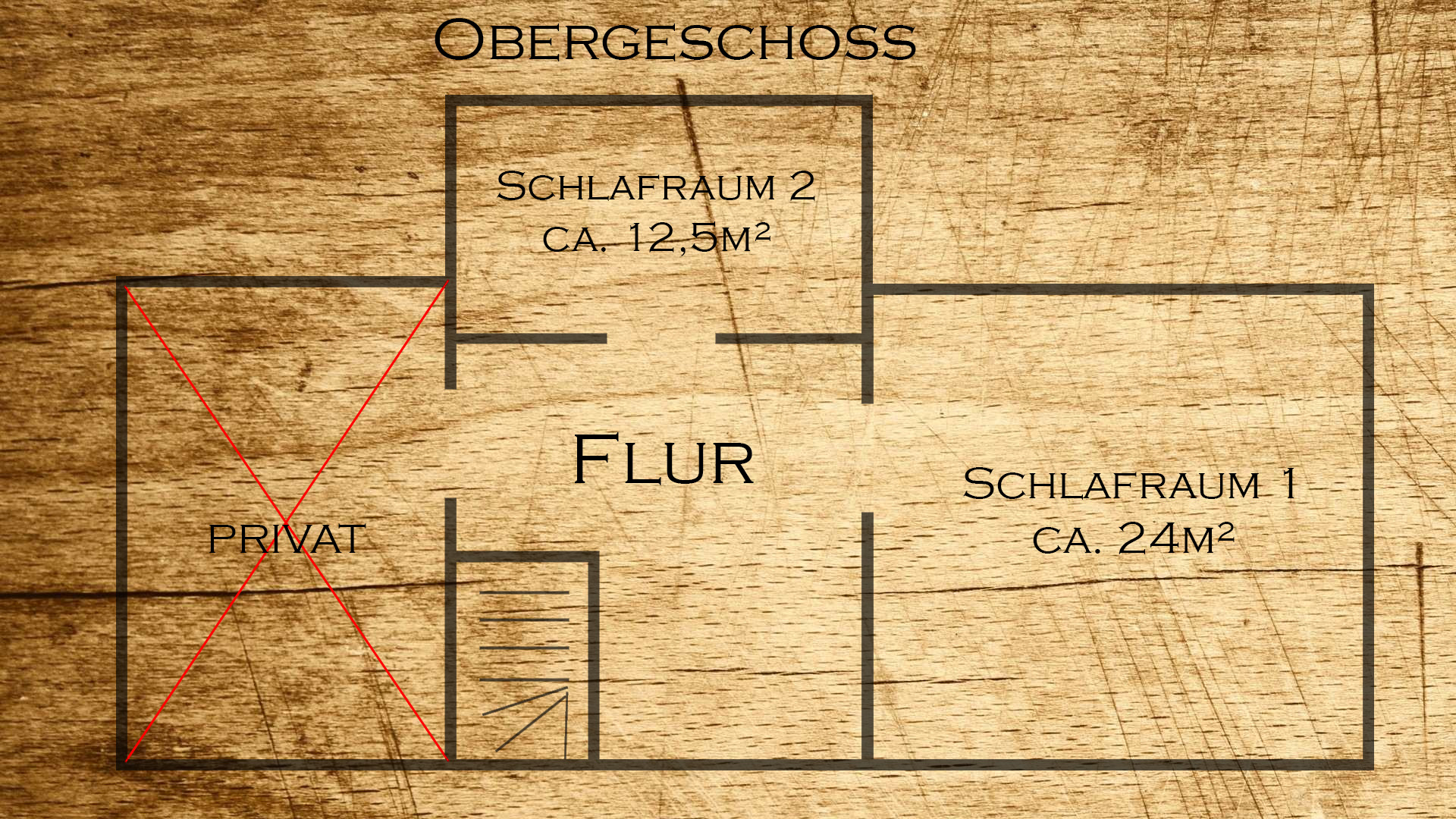 Hier ein paar Bilder der Räume im Obergeschoß:
